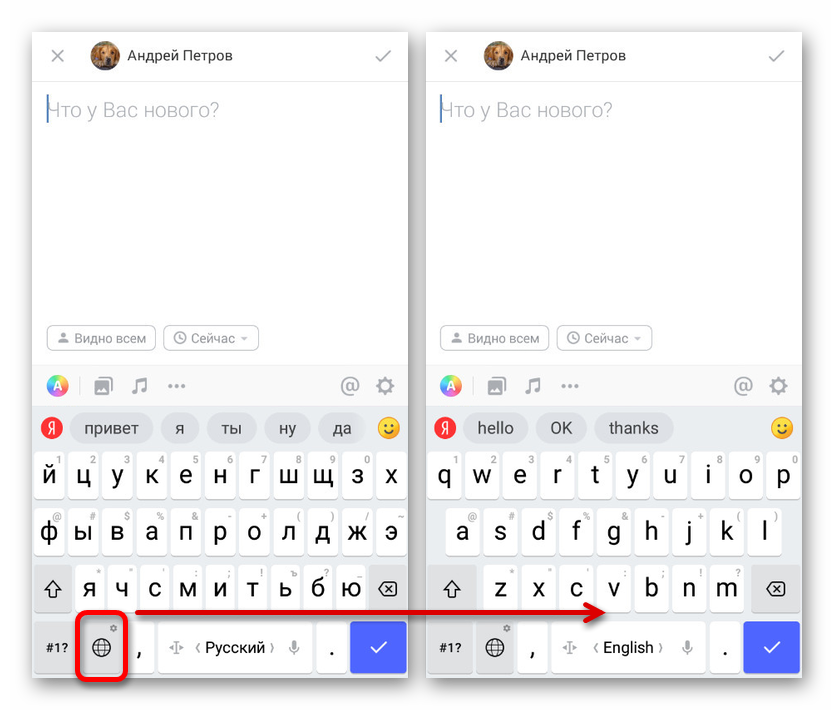 Коснитесь любой области текстового поля, чтобы отобразить виртуальную клавиатуру. Приложение, отвечающее за внешний вид, значения не имеет, однако для продолжения необходимо включить англоязычную раскладку.