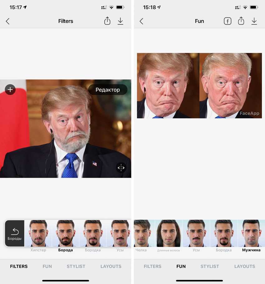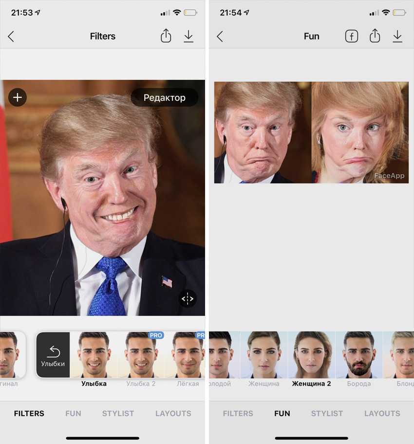 FaceApp является одним из самых популярных редакторов лица. Здесь есть большое количество разнообразных фильтров, таких как смена пола, наложение макияжа, бороды, улыбки, смена возраста и другие. В том числе в этом приложении есть и фильтр, который делает лицо толстым.