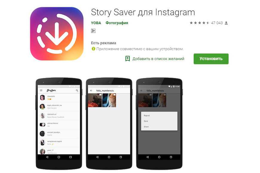 Чтобы скачивать видео контент без использования публикаций для ОС iOS и Андроид не обойтись. Они оказывают услуги при желании скачать сторис и самостоятельно провести репост им через промежуток времени. Вот ПО для Андроид-телефонов: