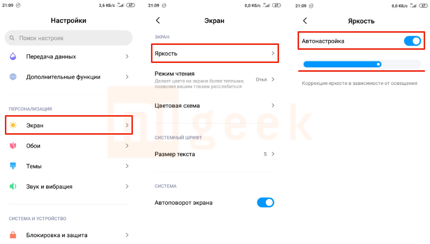 Данные настройки находятся в пункте «Экран» — «Яркость».