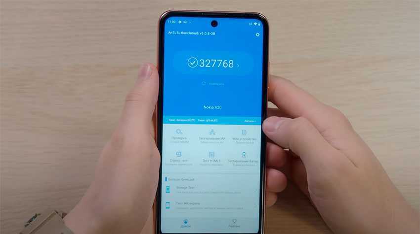 Об остальном «железе» мы уже упоминали. В новых смартфонах Nokia X20 Sand и Blue установлено 8 Гб оперативной и 128 Гб физической памяти. Тест производительности AnTuTu для Nokia X20 демонстрирует весьма неплохие результаты – наравне с другими топ смартфонами из того же ценового сегмента. Практика тоже подтверждает высокую производительность девайса.