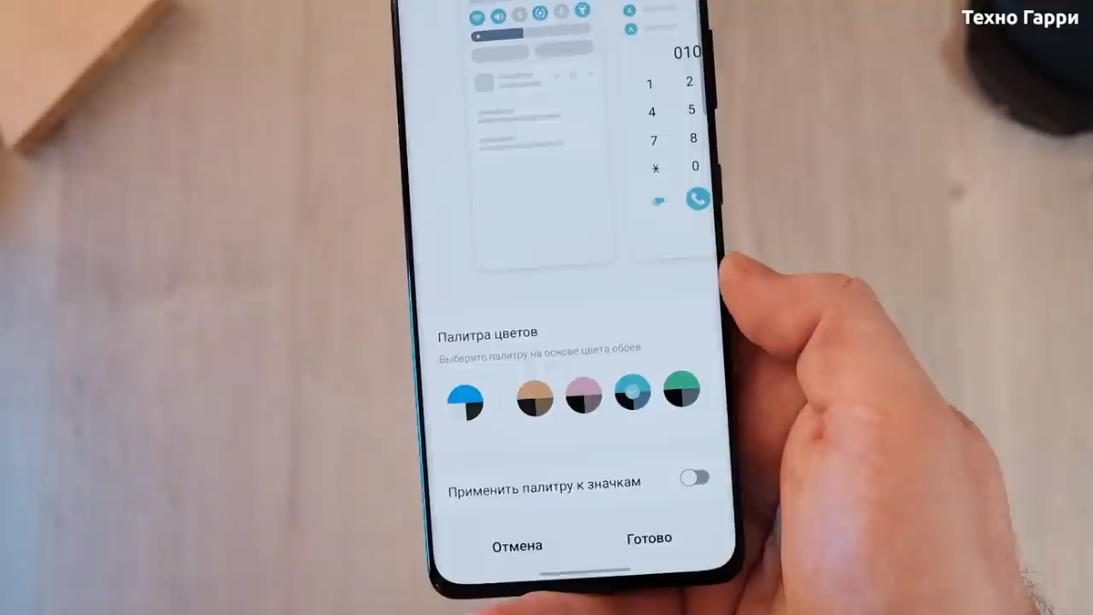 И если я поменяю обои главного экрана, то в Палитре цветов появятся новые варианты, которые будут соответствовать текущим обоям. Это прикольно.