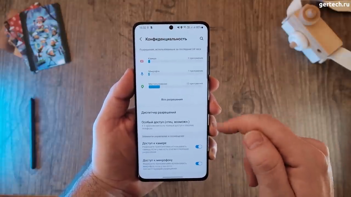 One UI 4 также имеет индикаторы приватности в правом верхнем углу. Если приложение использует камеру или микрофон, то вы увидите соответствующий значок.