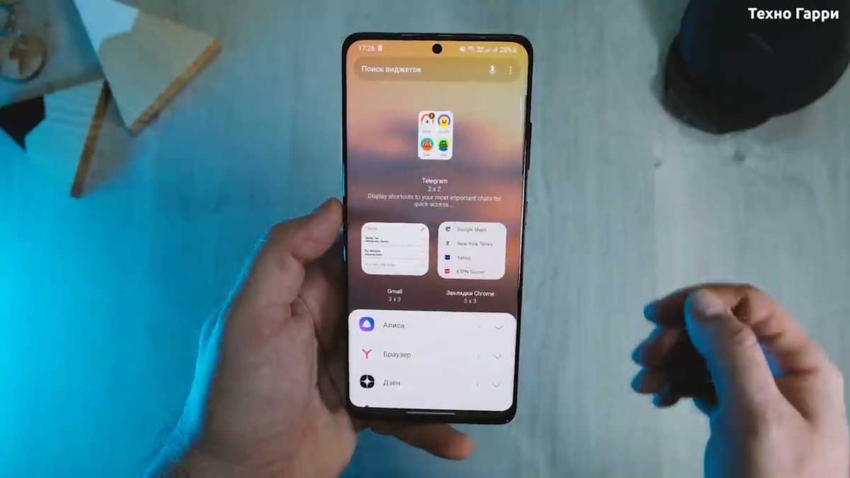 Теперь перемещаемся в панель виджетов. Касаемся на секунду в пустом месте главного экрана и выбираем меню Виджеты. Вот как оно теперь выглядит. Это больше похоже на исполнение Android 12, и на мой взгляд оно намного лучше, чем горизонтальное перелистывание виджетов по одному. что было у предыдущей One UI. Здесь мы можем найти нужный виджет через поиск, либо пролистать вниз.