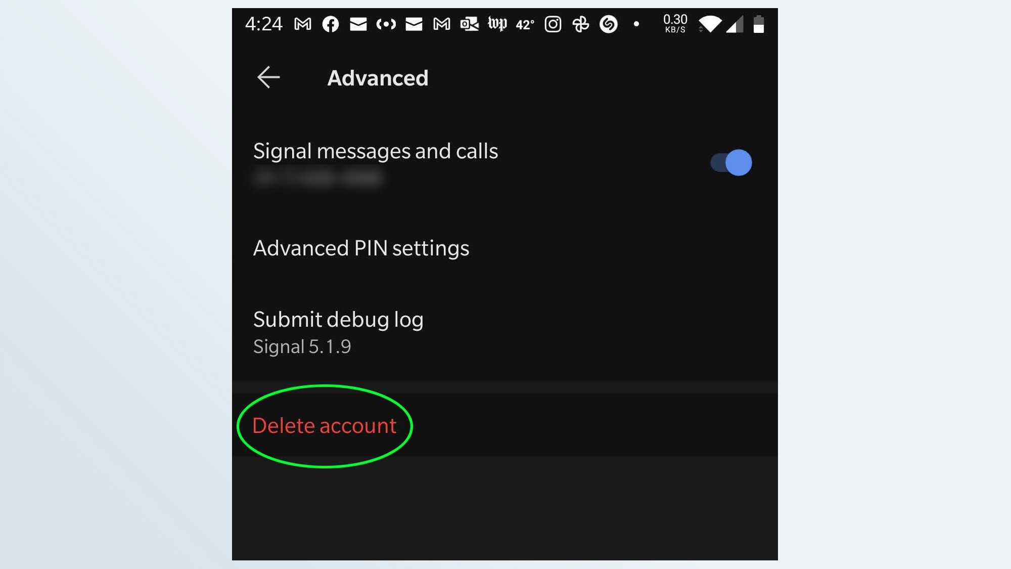 (Изображение предоставлено: сигнал / снимок экрана Tom’s Guide) Если вы когда-нибудь захотите уничтожить свою учетную запись, перейдите в «Настройки»> «Дополнительно» и нажмите кнопку «Удалить учетную запись».