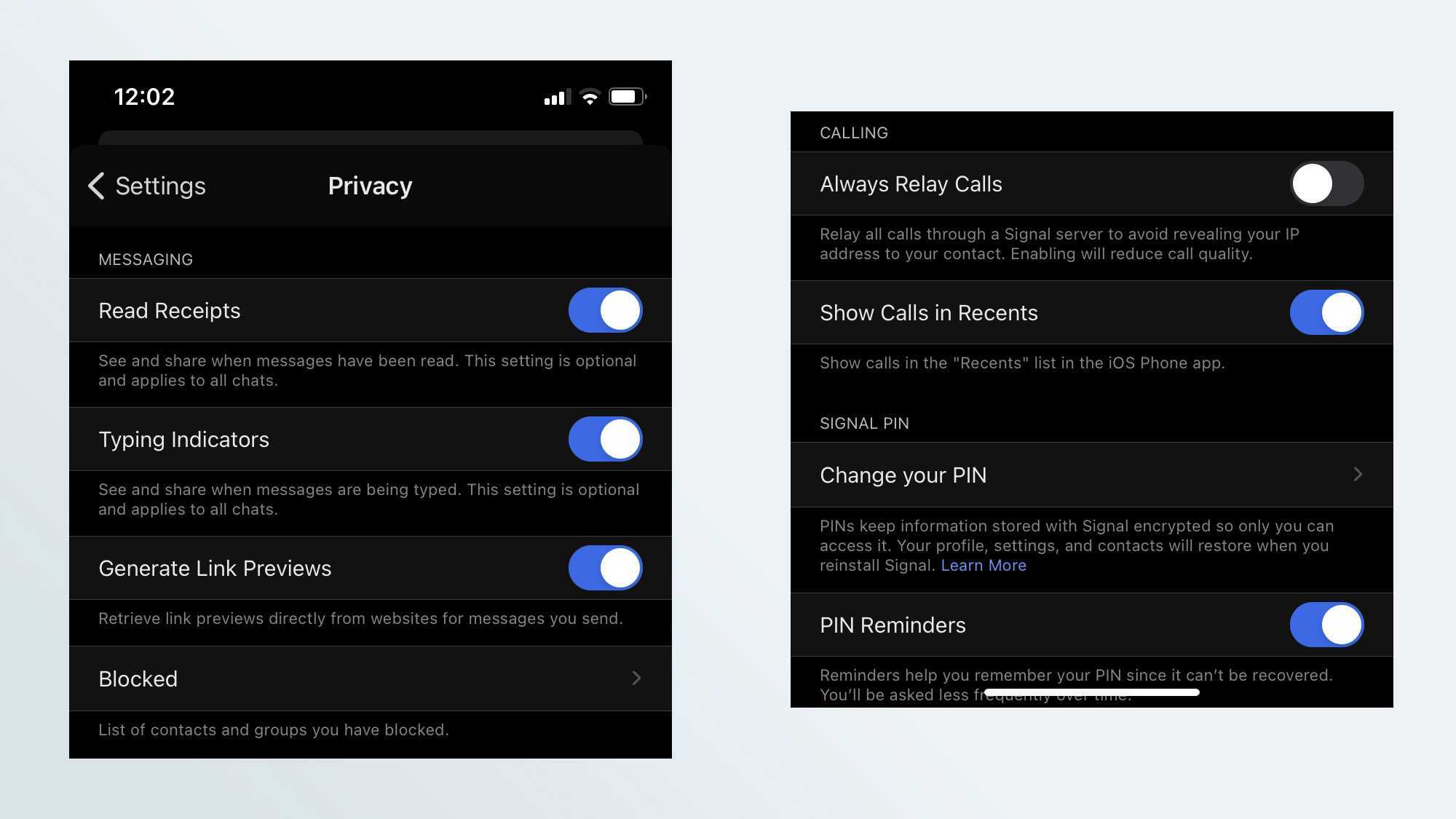 В Signal есть ряд дополнительных параметров конфиденциальности, которые вы можете включить. На главном экране перейдите в «Настройки»> «Конфиденциальность», чтобы изменить определенные параметры обмена сообщениями, такие как уведомления о прочтении, а также защиту экрана, которая предотвращает отображение предварительного просмотра сообщений, и блокировку экрана, для которой требуется ваш пароль или биометрический доступ для просмотра приложения.