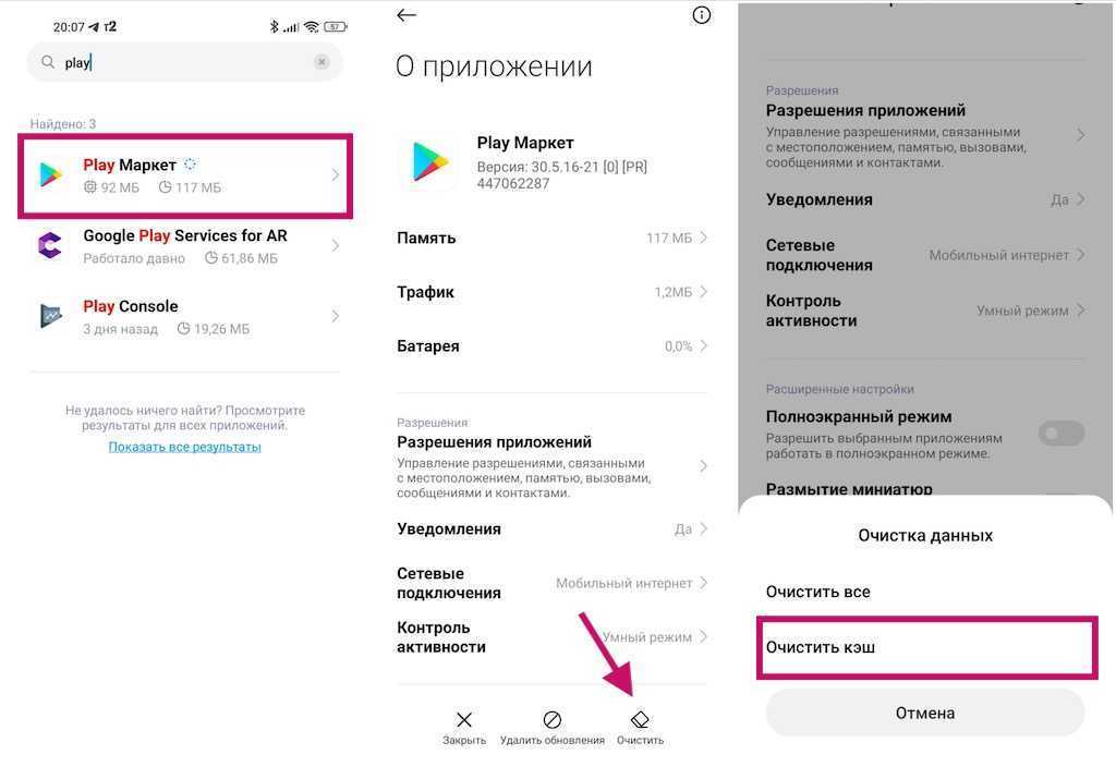 Очистите кеш Google Play