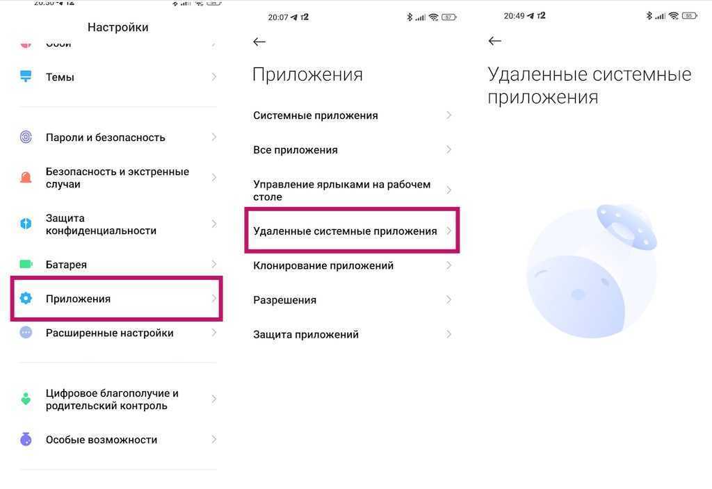 - Если какие-либо приложения отключены, вы увидите список в «Удаленные системные приложения».