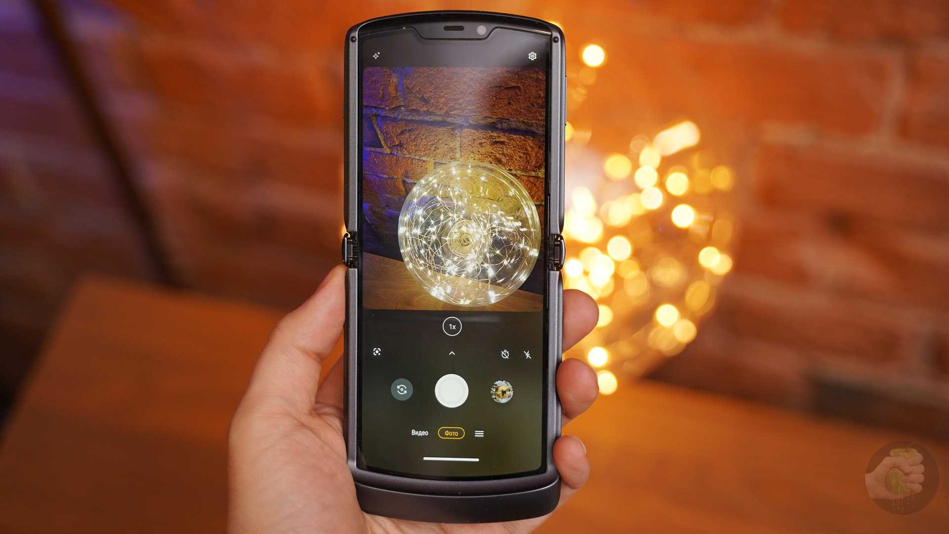 Весьма удобно, что камера запускается привычным мотороловским жестом, когда вертишь телефон в руке, пара поворотов в ладони и можно снимать. Правда, в закрытом состоянии можно запечатлеть лишь самого себя: во всех остальных случаях придётся раскрывать телефон.