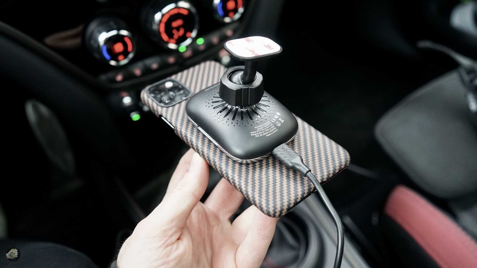 Но если у вас с этим нет проблем, получите огромное удовольствие. Если кейс Pitaka оснащён фирменной магнитной системой (об этом может быть написано прямо на кейсе), он крепко-накрепко прилипает к держателю, смартфон заряжается, можно повернуть голову держателя вбок — ррраз и всё! Если бы нашёл в машине место, использовал бы каждый день. А так придётся отдать коллегам.
