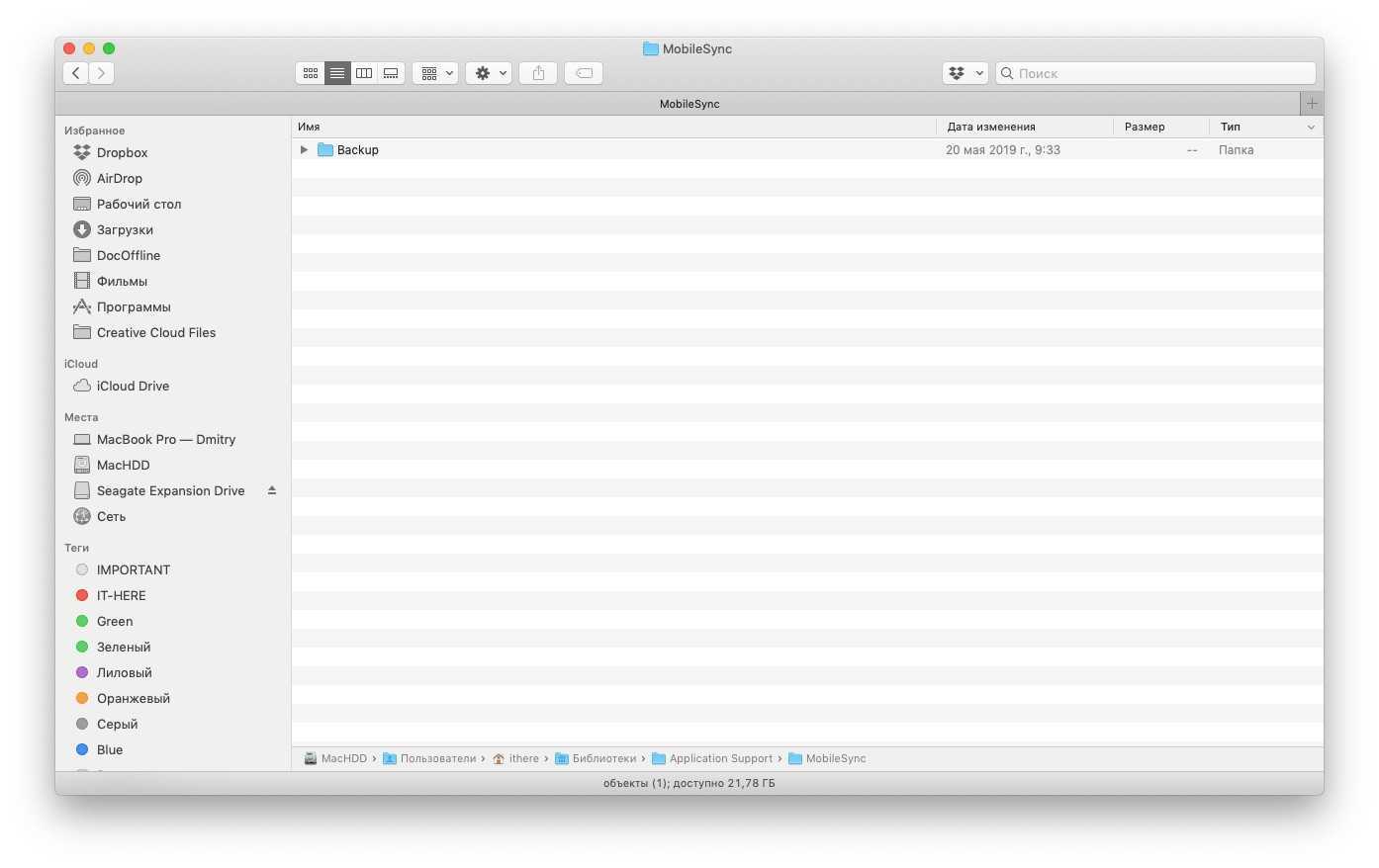 . Если вы все сделали правильно, то в папке ~/Library/Application Support/MobileSync/