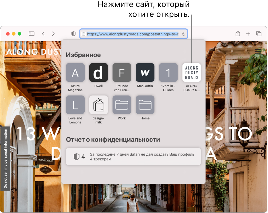 Добавление веб-сайтов в Избранное в Safari на Mac