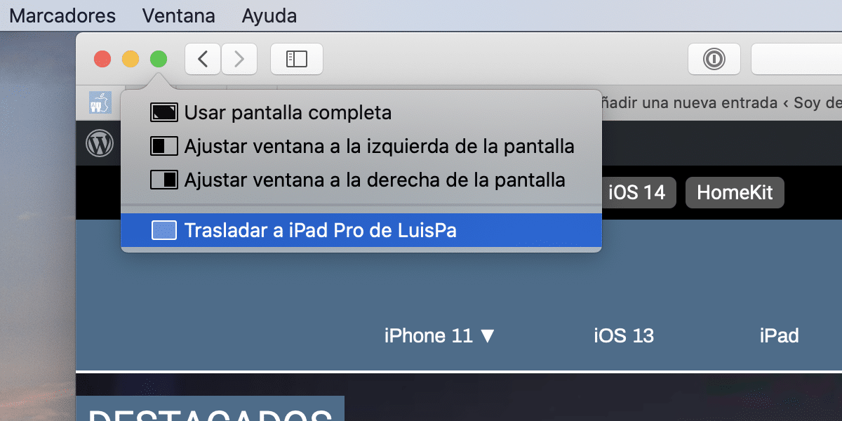 Перенести окна на внешний экран можно несколькими способами. Самый быстрый — это нажмите и удерживайте зеленую кнопку в окне и выберите «Перенести на iPad», или вы можете перетащить окно на рабочий стол, как это видно на видео. То же самое будет сделано, но в обратном порядке, чтобы восстановить окно на вашем Mac.