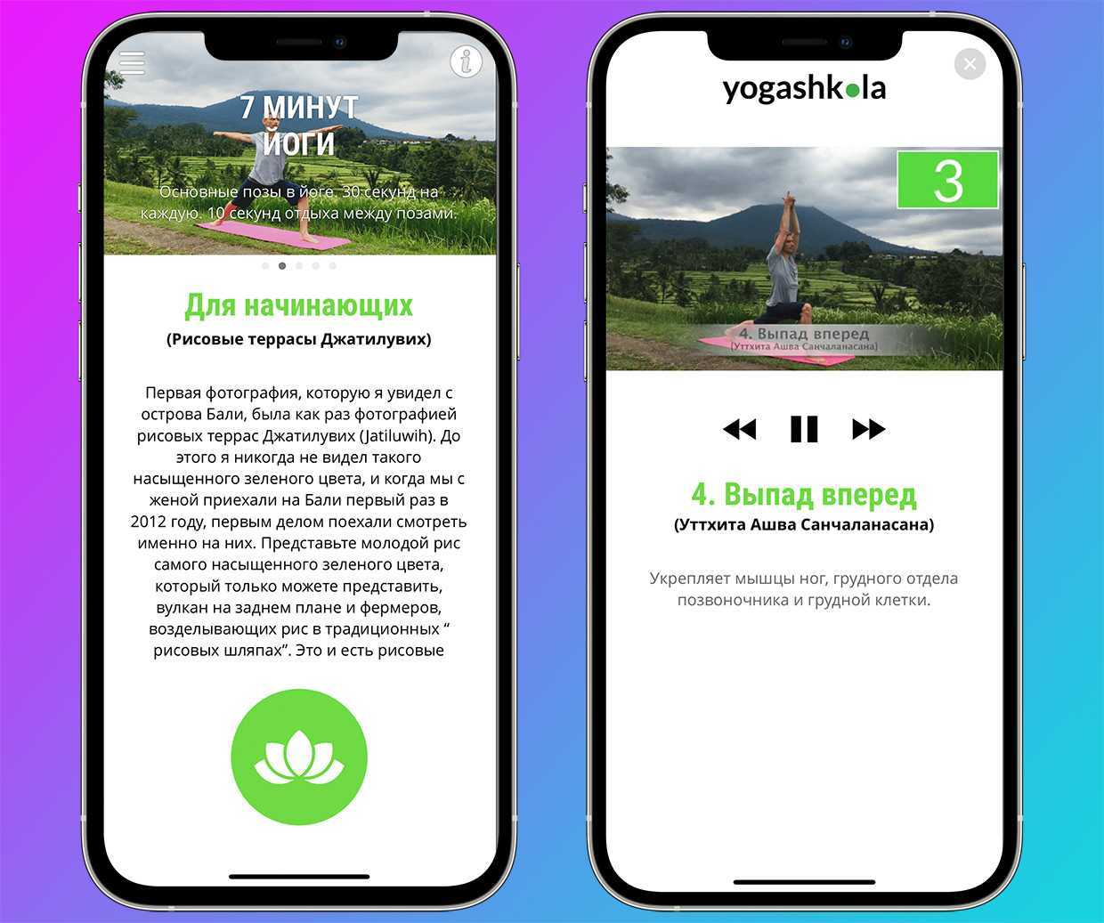 Приложение цепляет своей простотой, идеально для тех, кто делает первые шаги в йоге. 4 комплекса, снятые на фоне красивых видов острова Бали. Упражнения выполняются в течение 30 секунд с 10 секундной передышкой между ними.