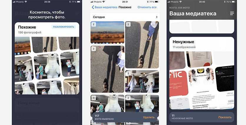 Отлично, теперь нужно очистить галерею айфона от одинаковых снимков сделанные ранее, а также от других ненужных фото. Сделать это можно вручную, но этот способ очень сложен, да и вряд ли кто-то захочет провести час-другой за абсолютно бесполезным занятием. Гораздо быстрее и удобнее загрузить специальный софт для айфона, который сам найдёт одинаковые фотографии и очистит их. Вот краткий список самых популярных: