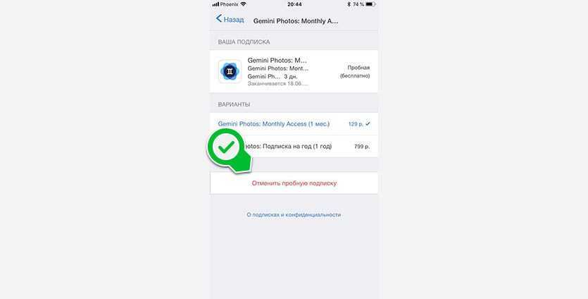 Для этого переходим в App Store – Настройки профиля (фото в правом верхнем углу) – Учетная запись – Подписки и отменяем подписку на Gemini Photos.