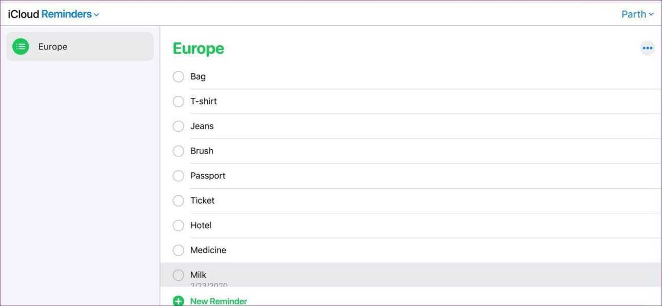 Нажмите «Напоминания», и откроется веб-версия «Напоминаний» с созданными списками в iCloud. Отсюда можно добавлять или выполнять новые задачи, а также добавлять примечания к задаче. Однако нет возможности добавлять новые списки, добавлять время и дату к задаче или даже получать уведомления о задаче на панели уведомлений Windows.