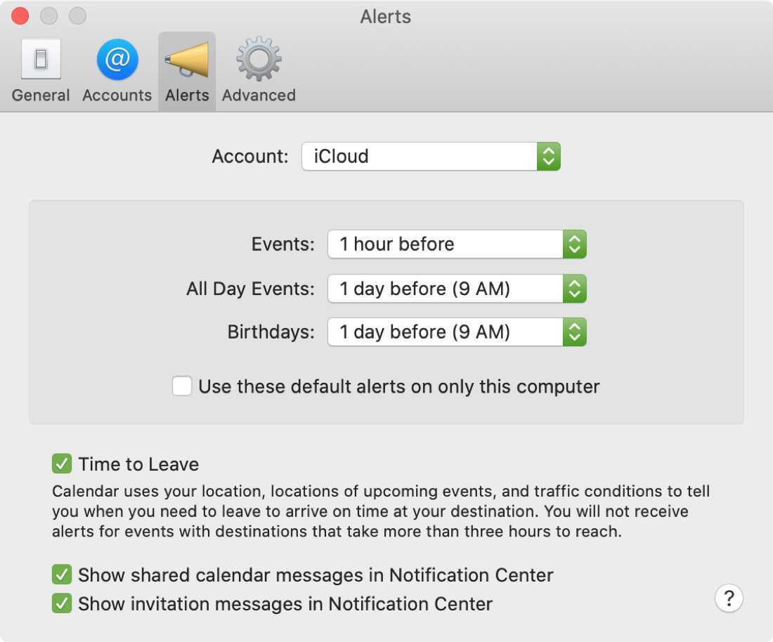 Такая гибкость позволяет получать оповещения не так, как на iPhone или iPad. Так что это очень полезно, если вы используете свой Mac только для личных задач, но календарь для работы и личных на iPhone.