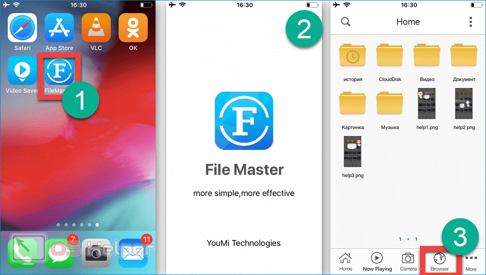 Чтобы скачать музыку на iPhone при помощи File Master, нужно выполнить следующую последовательность действий: