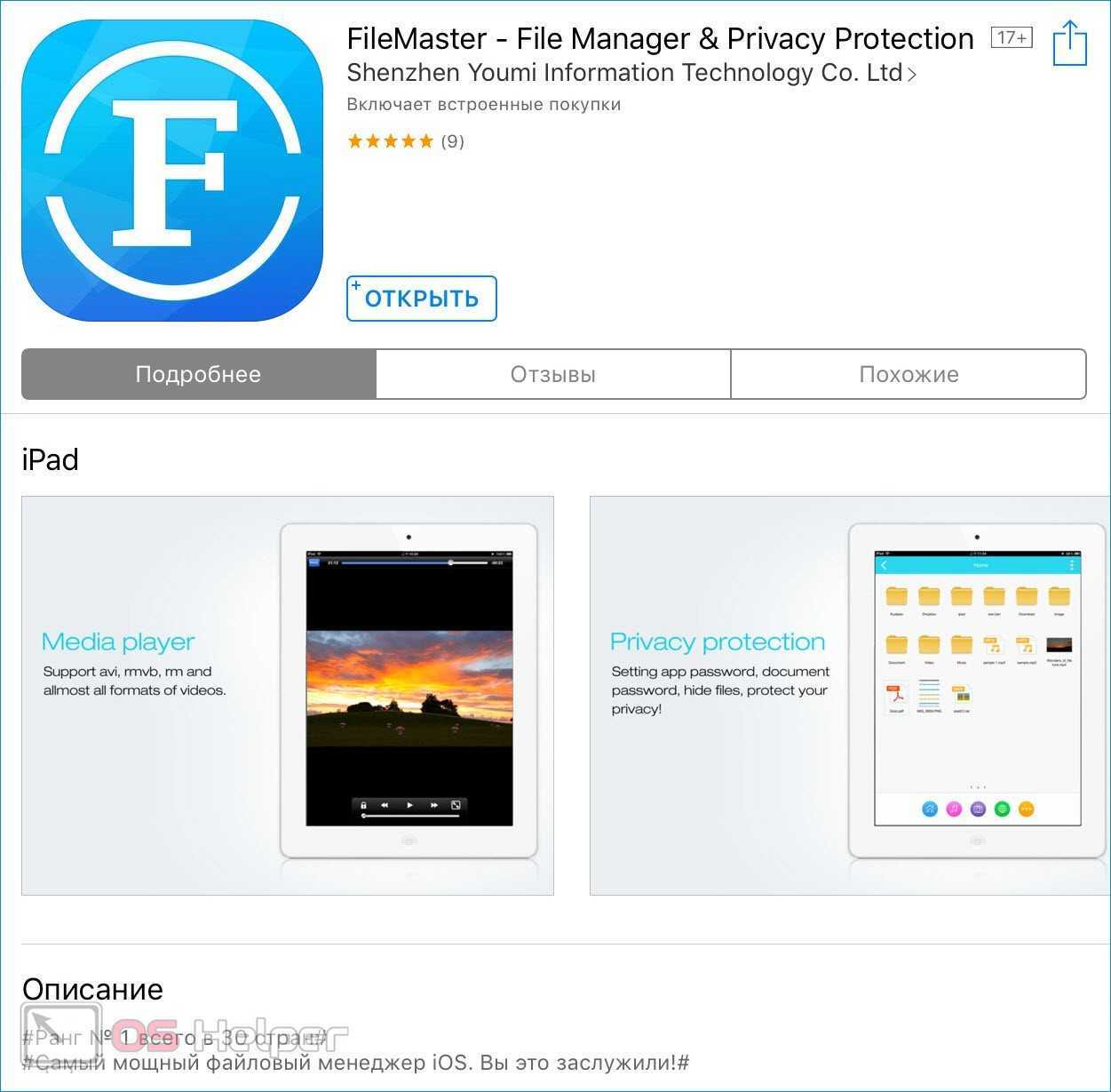File Master – это один из самых популярных файловых менеджеров для устройств под управлением iOS. Программа позволяет загружать на устройство музыку без подключения к компьютеру. Ключевое достоинство приложения заключается в том, что оно свободно распространяется через официальный магазин App Store и не требует получения джейлбрейка для корректной работы.