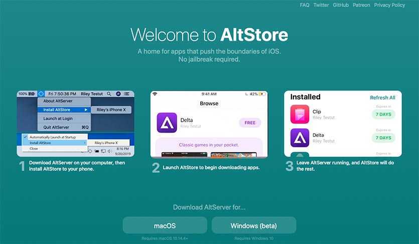 1. Скачайте AltServer для macOS или Windows c официального сайта утилиты.
