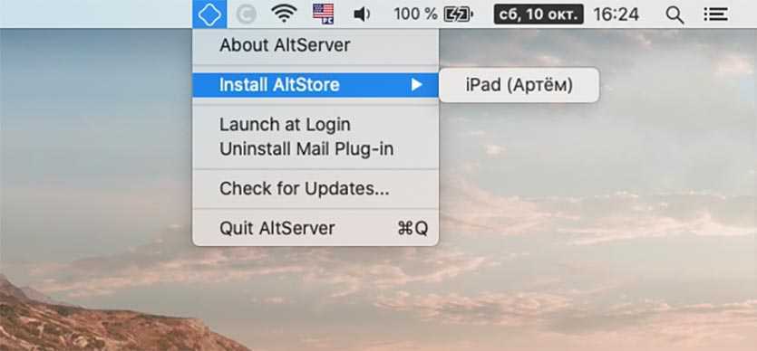 7. В меню приложения на компьютере выберите раздел Install AltStore и выберите подключенный смартфон.
