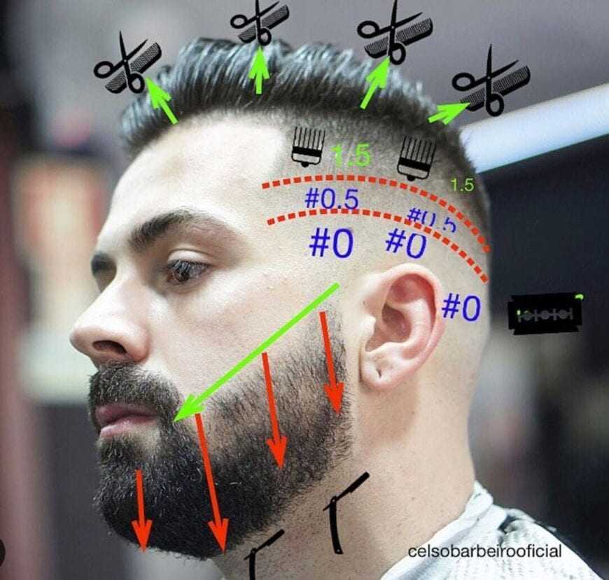 - Возьмите гребень, чтобы не срезать лишние волосы. Приложите расческу к виску, проведите ей в сторону подбородка. Избегайте соскальзываний и касаний гребнем кожных покровов, чтобы непреднамеренно не обстричь значительную длину волосистой части.