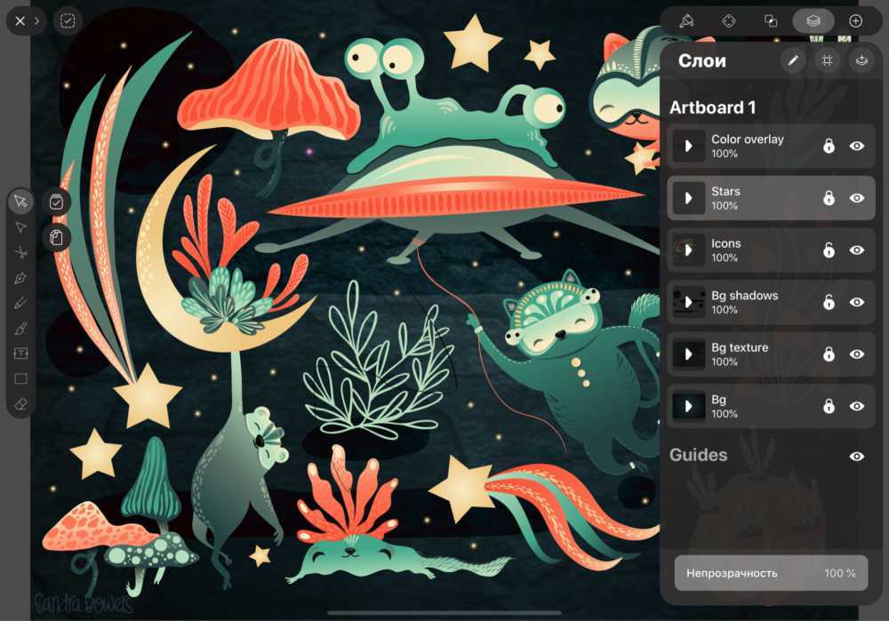 Vectornator Pro Может похвастать удобным и понятным интерфейсом и при этом приличным набором возможностей. Бесконечным количеством слоев, смешиваний, тут есть маски, разные цветовые профили и тд. Кроме того куча предустановленных шаблонов для создания интерфейсов, от смартфонов и планшетов до Apple Watch. Приложение работает на технологии Metal для 64-битных устройств и легко справляется с большими проектами с кучей деталей. Кроме того Vectornator поддерживает работу со стилусом и внешними клавиатурами. В общем если вы занимаетесь дизайном или рисуете, то это тот самый случай когда попробовать точно стоит, тем более, что денег за это никто не просит.
