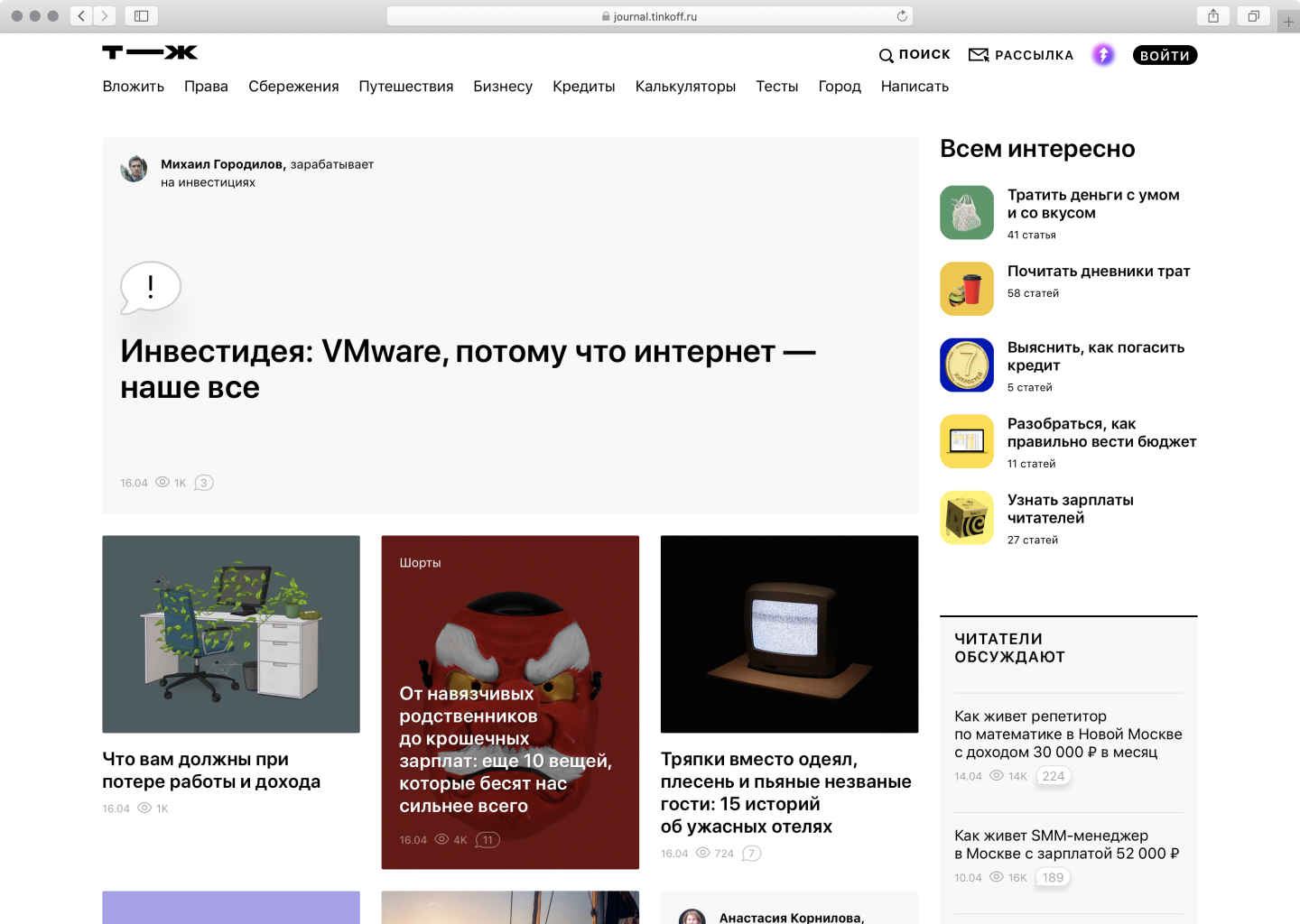 Журнал банка «Тинькофф» — один из самых ярких примеров российских бренд-медиа и считается едва ли не эталоном в сфере контент-маркетинга. Здесь публикуют тексты об управлении деньгами (как экономить, вкладывать и не дать себя обмануть) и делятся историями предпринимателей, а также дают много полезных советов, которые пригодятся в разных жизненных ситуациях.