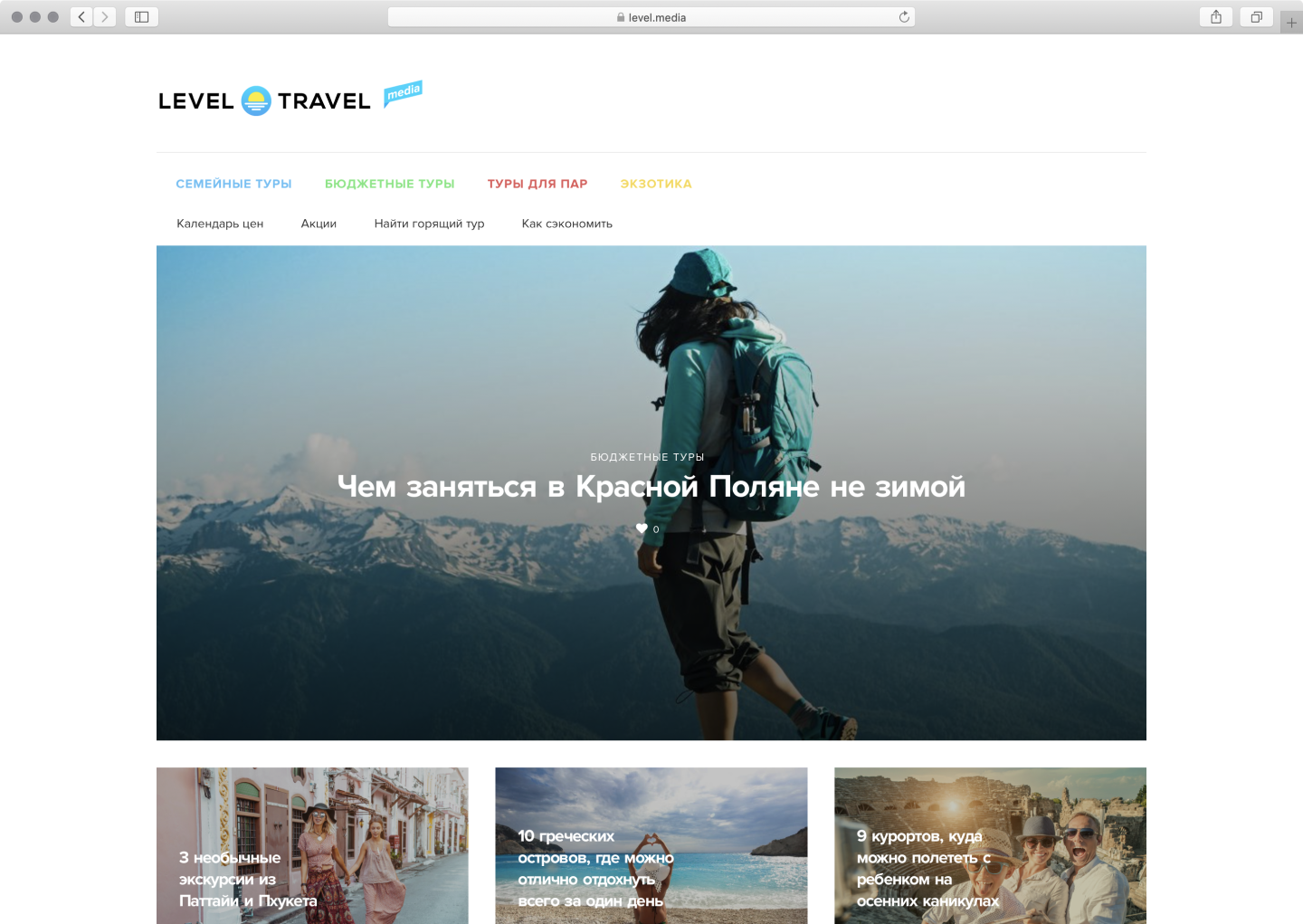 Медиапроект московского онлайн-агрегатора туров Level.Travel. Здесь рассказывают, как сэкономить на путешествиях, и делятся полезными советами для туристов: что посмотреть, где поесть и куда поехать.