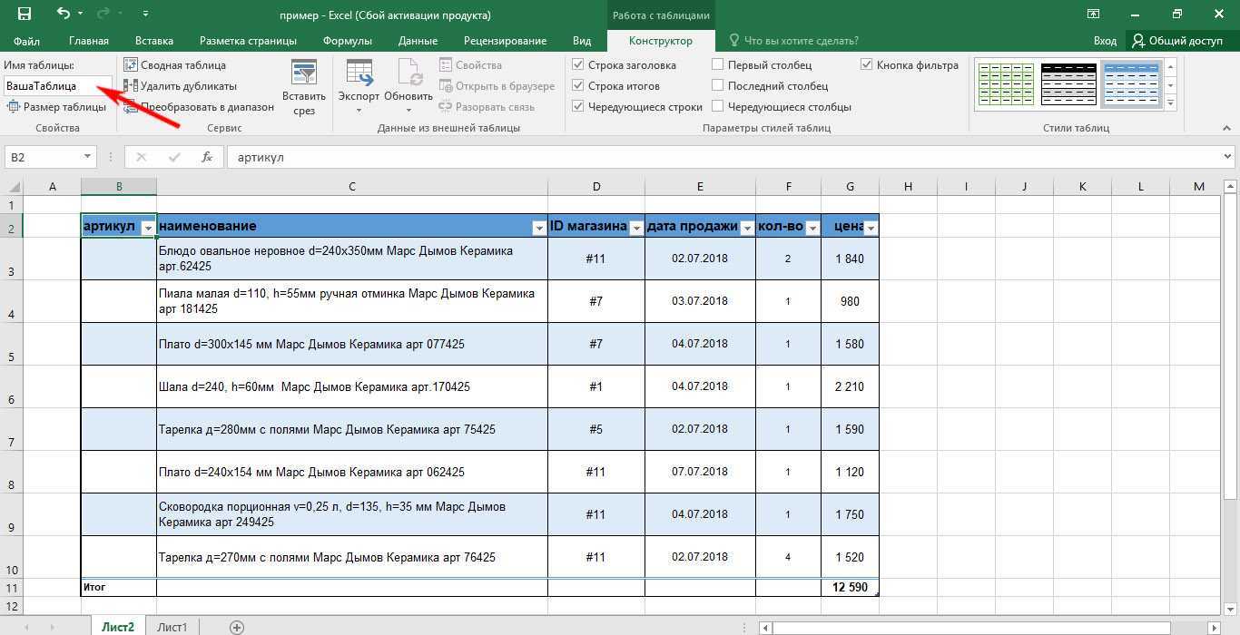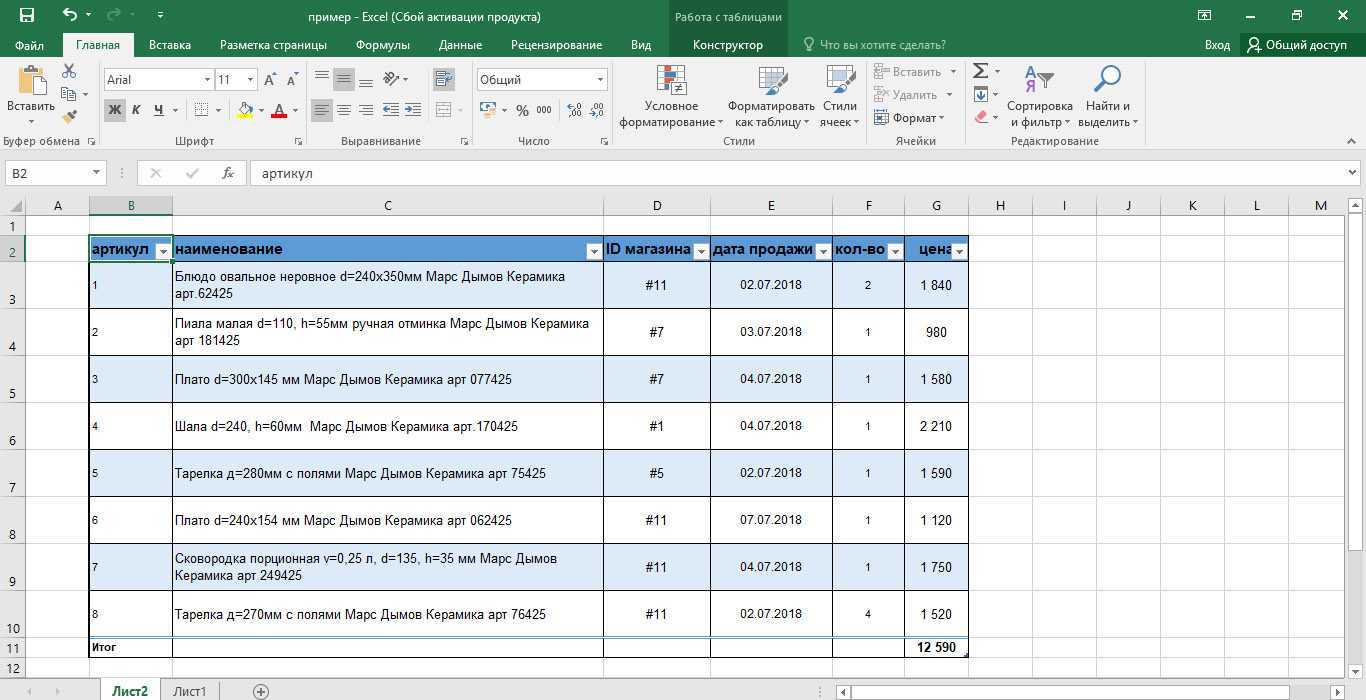 Рассмотрим создание сводной таблицы в Экселе на конкретном примере.