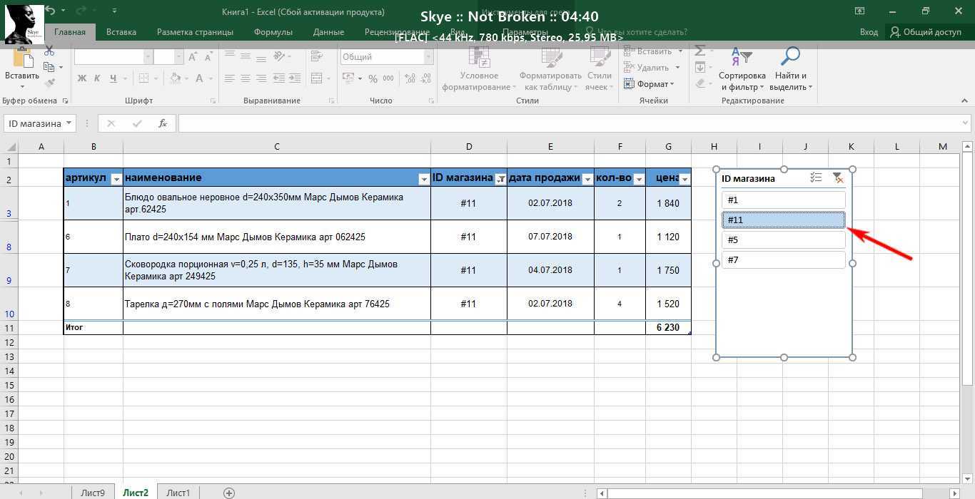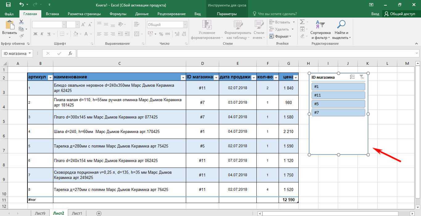 По умолчанию срез показывает все строки таблицы. Выберите при помощи мыши те строки, которые хотите оставить. Excel скроет ненужные строки автоматически.