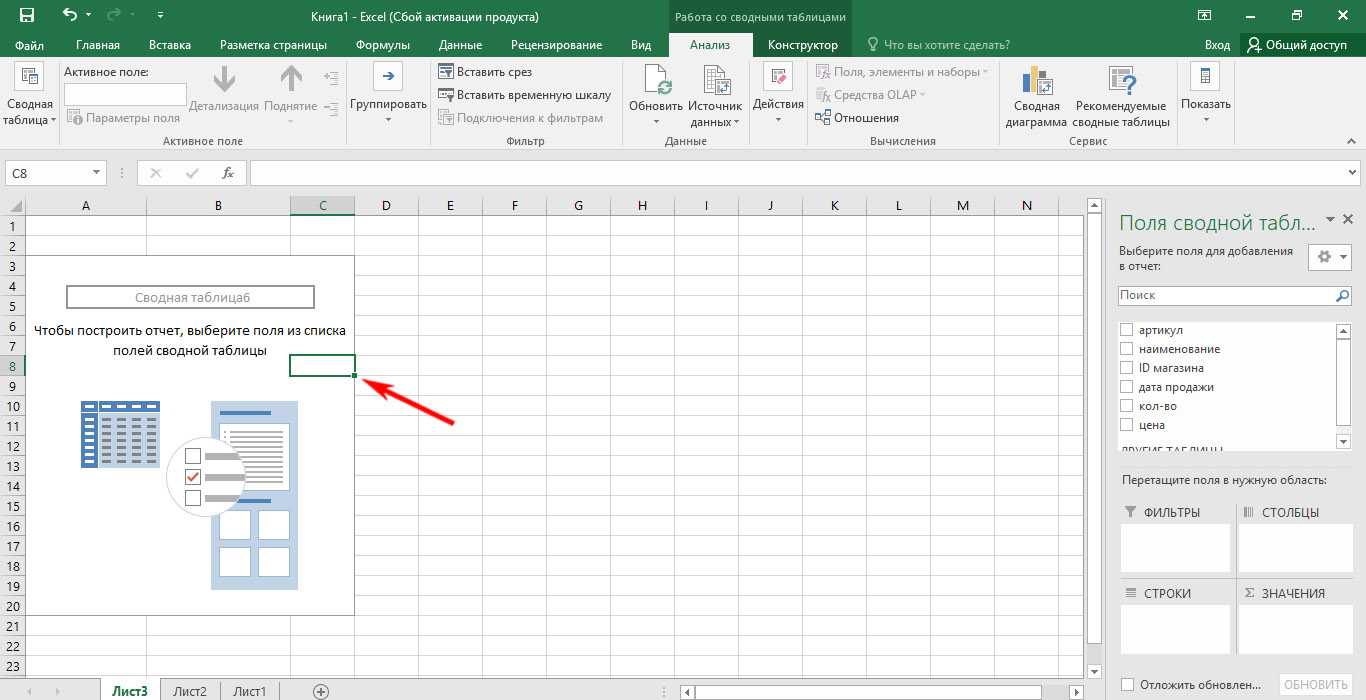 На новом листе щёлкните на окне сводной таблицы. Справа появится меню.