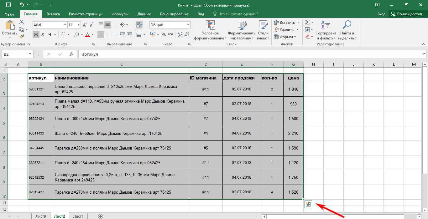 У нас есть таблица, куда занесены следующие данные: артикул, наименование товара, ID магазина, дата продажи, количество, цена.