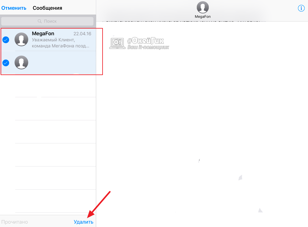 Стереть диалог в iMessage можно сделав свайп влево, после которого появится соответствующее предложение удалить переписку. Также сверху можно выбрать пункт «Изменить» и далее нажимать на переписки, которые необходимо удалить и выбрать в нижнем правом углу списка диалогов кнопку «Удалить».