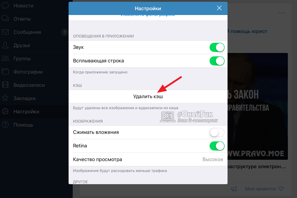 Первый способ. Он заключается в использовании настроек приложения. Программы, которые предполагают хранение кэша, чаще всего содержат настройку, позволяющую его удалить. В зависимости от приложения, она может называться по-разному, но ее можно найти в основных настройках программы.