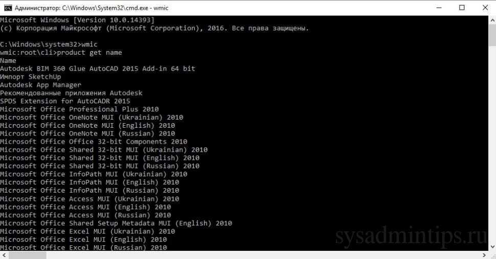 Внимание: нужно подождать, команда выполняется не сразу, поэтому возникает первое впечатление, что ничего не происходит. После небольшой паузы появится весь перечень установленного ПО
