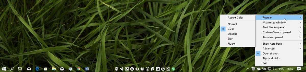 Другой пользователь Reddit Elestriel с подобным инструментом «TaskbarTools». Эта программа сделана в C #, и также позволяет панели задач быть полностью прозрачной. Инструмент позволяет применить размытие, а также изменить цвет Панели задач. Вы можете сделать ее похожей на панель в Windows 7.