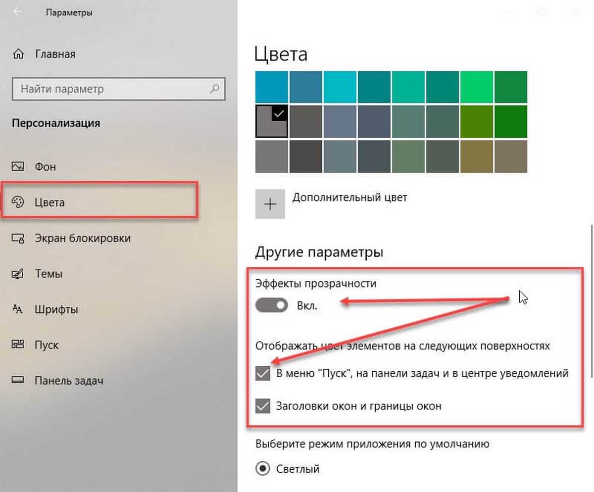 Включить эффект прозрачности в меню «Пуск» и на Панели задач.