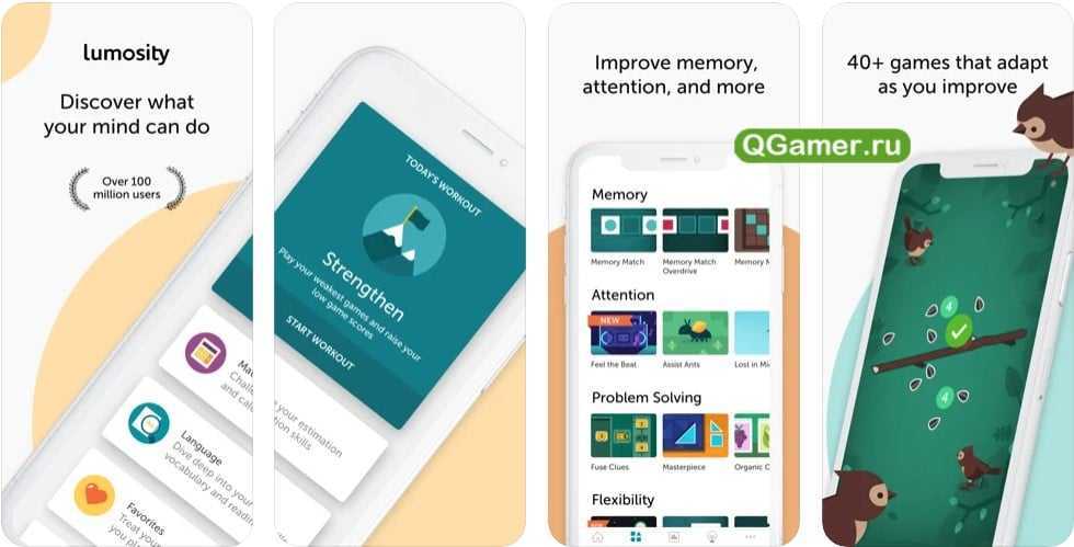 Функциональное приложение, в котором есть 7 категорий развивающих игр, направленных на улучшение памяти, скорости реакции, навыков языка и математики, а также гибкости. Однако после скачивания пользователю нужно пройти тест, чтобы программа определила уровень его навыков. Тест, кстати, очень простой и состоит из 3 игр. В конце результаты обрабатываются, и Lumosity предлагает пользователю персональную программу.