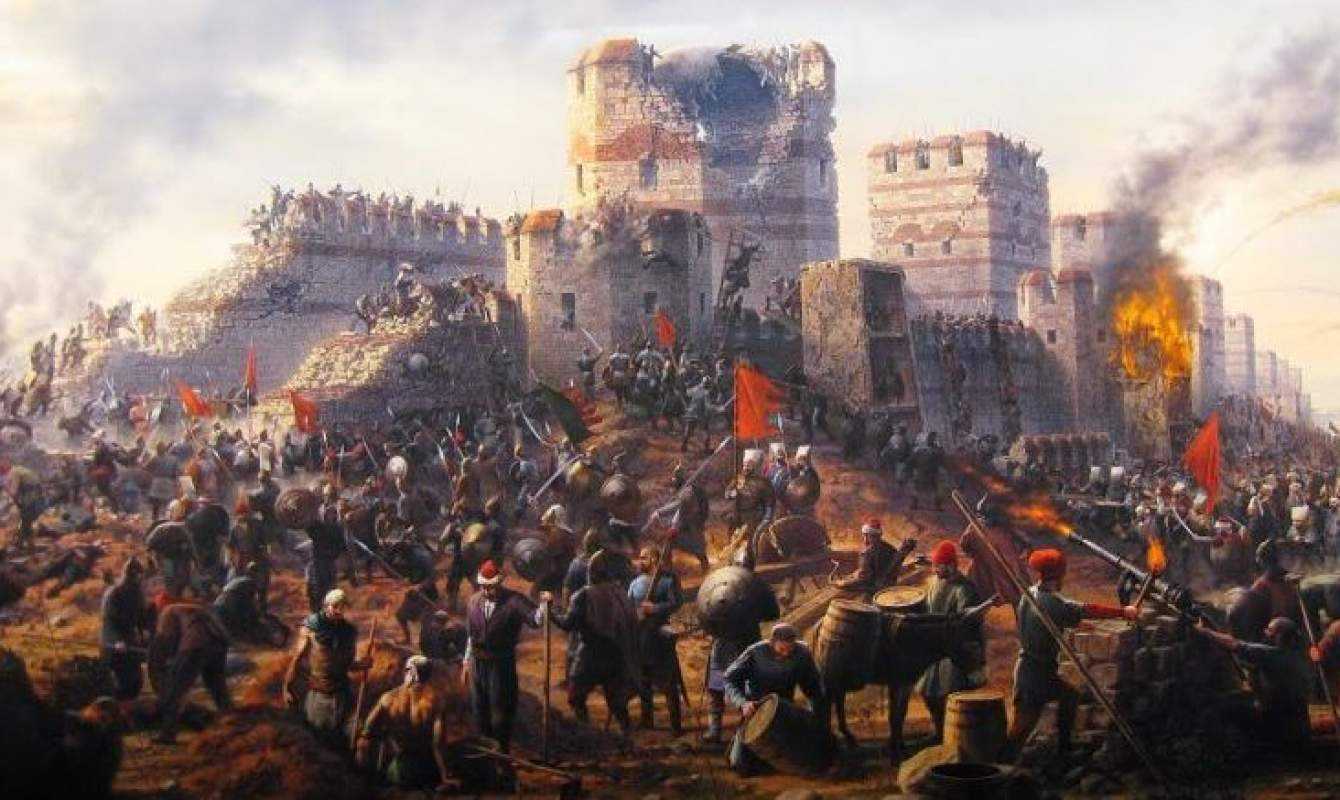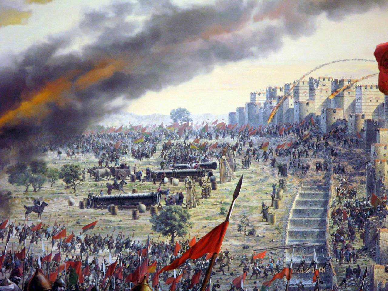 Почти на рассвете «Базилика» одним выстрелом разрушает часть стены и туда устремляются турки, но их снова отбрасывают. И тут султан вводит в бой последний резерв — янычар. Две колонны лучших воинов Османской империи в пешем строю молча идут в атаку. Сам Мехмед II возглавляет их, провожая до рва.
