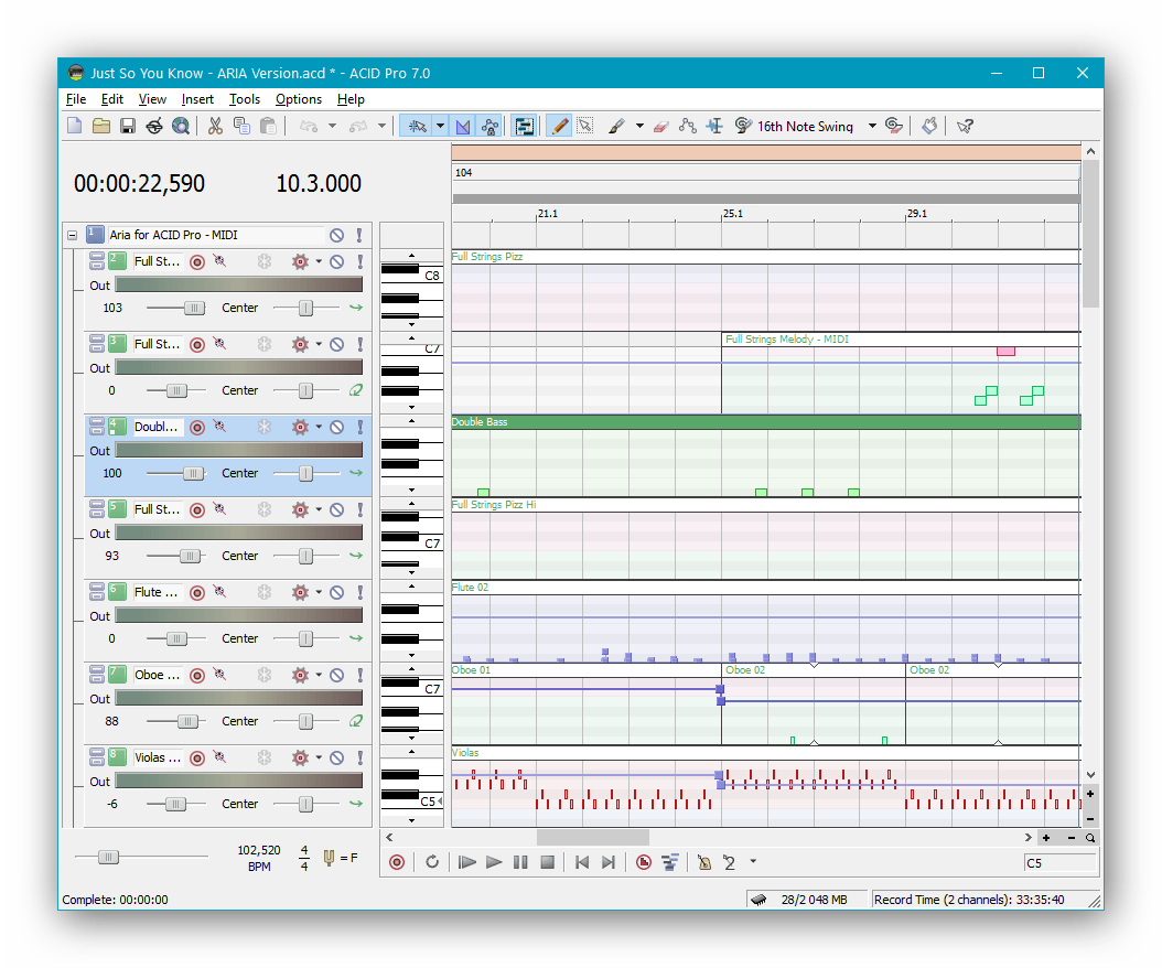 В наш список попала профессиональная программа Sony Acid Pro, принцип работы которой изначально основывался на создании музыки с помощью лупов (циклов). С каждым обновлением исправлялись ошибки и добавлялся новый функционал. Теперь пользователи стали положительнее относиться к Acid Pro, а многие начали работать в ней постоянно.