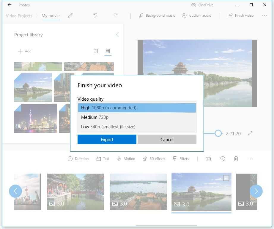 После редактирования видеоклипов вы можете нажать Закончить видео чтобы экспортировать это. Microsoft Photos предлагает 3 качества видео, включая высокое (1080p), среднее (720p) и низкое (540p). Рекомендуется выбирать высокое качество видео.