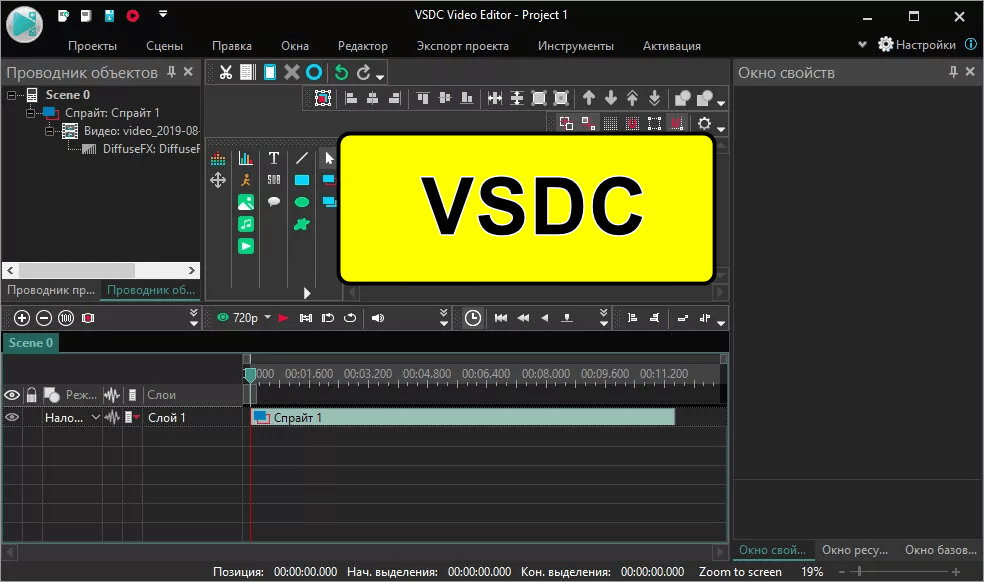 Еще одна альтернатива простого видеоредактора – утилита VSDC. У нее есть платная и бесплатная версии с разным списком доступных инструментов и функций.