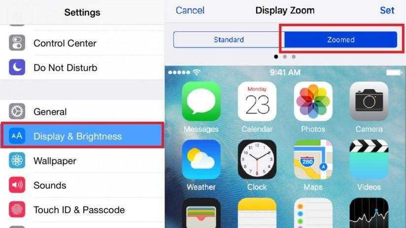 1. Заходим в «Настройки» и выбираем «Экран и яркость». 2. Затем нажмите «Увеличение экрана» и выберите параметр просмотра, чтобы проверить, включено или отключено увеличение экрана. 3. Если параметр находится в состоянии масштабирования, просто выберите стандартный режим, а затем нажмите кнопку «Применить», чтобы сохранить изменения. 4. В следующем окне нажмите кнопку Использовать стандартный, чтобы продолжить работу в стандартном режиме. 5. После завершения телефон перезагрузится в стандартный режим.