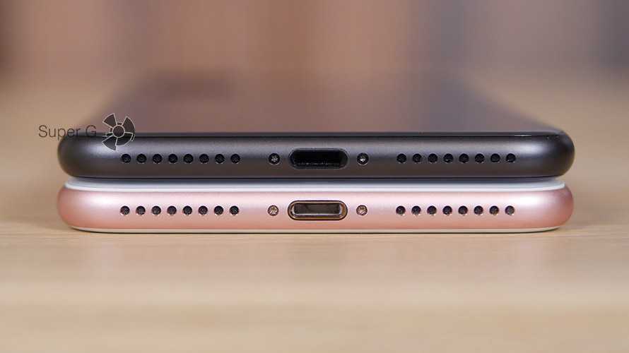 Пожалуй, нам во внешности iPhone 7 Plus всё нравится. Кроме габаритов. Взгляните на эти два телефона: