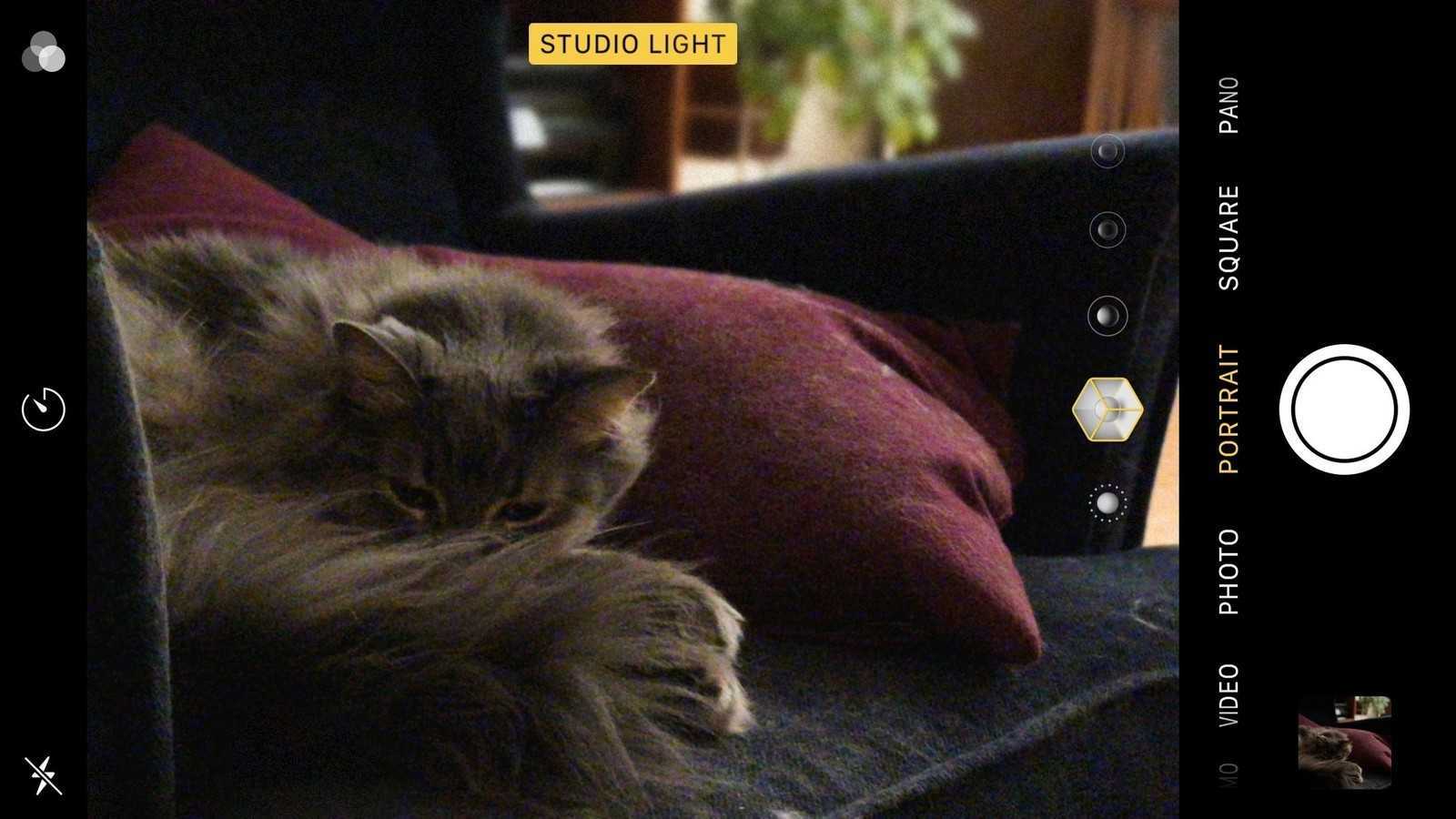 - Если у вас iPhone 8 Plus или Х, вы можете прокручивать или нажимать на значок кубика над кнопкой затвора, чтобы изменить эффекты освещения.