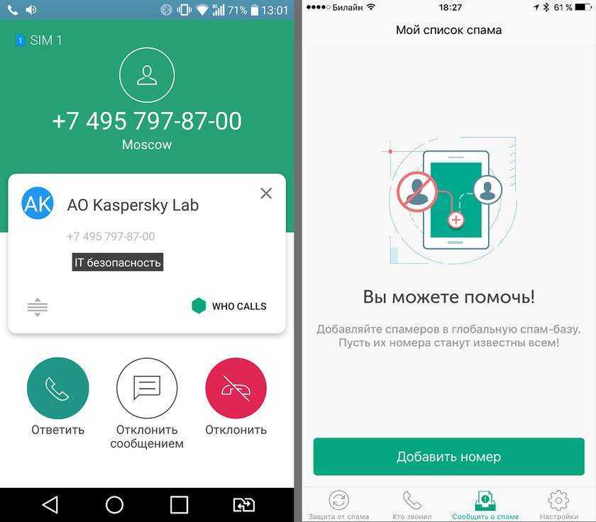 Определитель от знаменитой Лаборатории Касперского позволяет определять все номера без исключения, включая различные организации и структуры без навязчивой рекламы. Стоит расширенный пакет 129 руб./мес. Но вот базовый вариант имеет бесплатную версию.