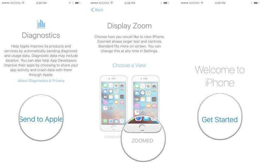 - Система предложит вам выбрать один из двух вариантов отображения информации на экране iPhone: «Стандартно» и «Увеличено». Если у вас нет проблем со зрением, выберите «Стандартно»;