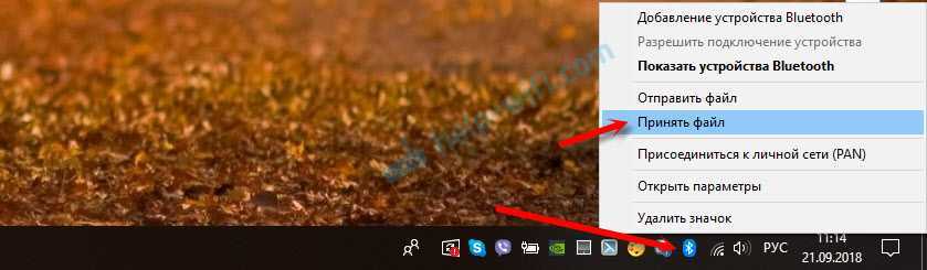 Не сложнее чем с ПК на телефон. Перед этим так же желательно выполнить сопряжение устройств, как я показывал выше. В Windows 10 нажмите на иконку в трее и выберите «Принять файл».